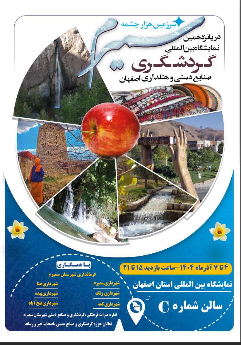 در این روز ارزشمند، لازم است از تلاشهای صادقانه، دلسوزانه و پیگیرانه مدیریت محترم میراث فرهنگی، صنایع دستی و گردشگری شهرستان سمیرم و تمام همکاران این حوزه که بدون چشمداشت و با همت والای خود در راستای حفظ و معرفی داشتههای فرهنگی و طبیعی منطقه تلاش میکنند، بهطور ویژه سپاسگزاری نمایم.
